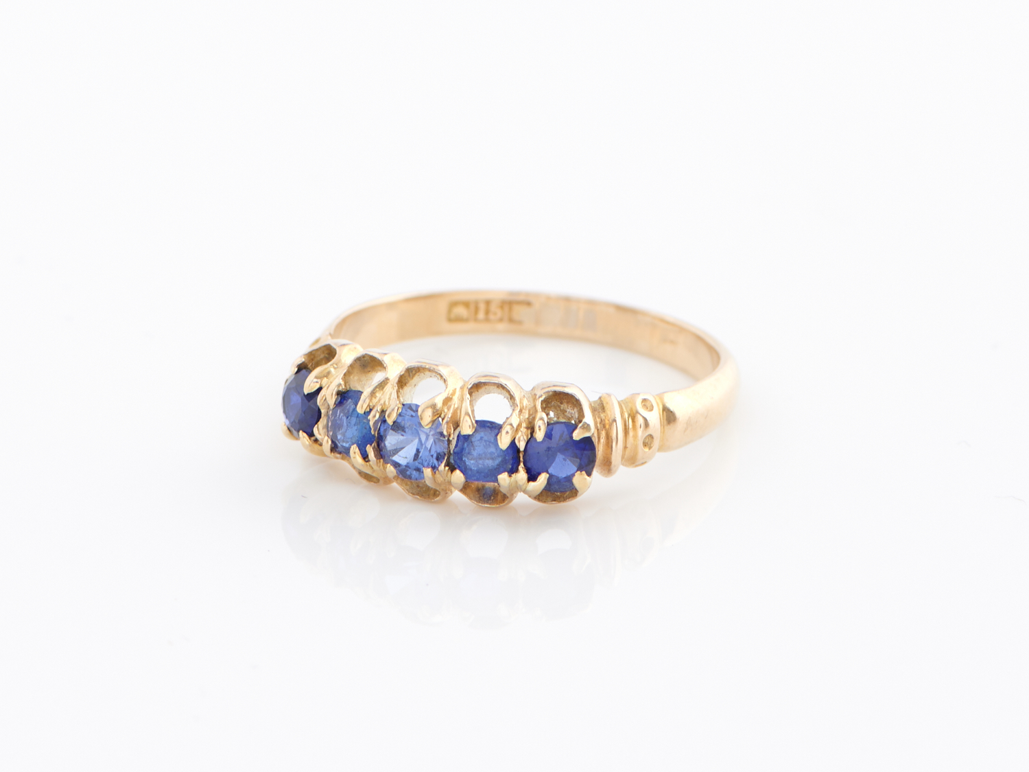 AN ANTIQUE AUSTRALIAN SAPPHIRE SET RING IN 15CT GOLD, RING SIZE R, 3.3GMS