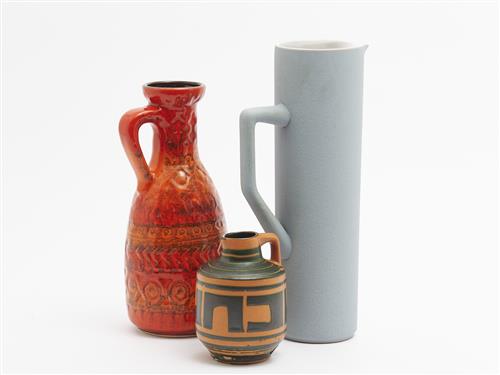 THREE MID-CENTURY WEST GERMAN JUGS H.30CM, LEONARD JOEL LOCAL DELIVERY: SMALL