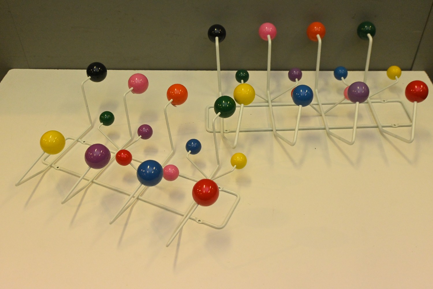 TWO EAMES STYLE HANG IT ALL COLOURFUL BALL COAT HOOKS (THE LARGEST 38H X 46W X 13D CM) (LEONARD JOEL DELIVERY SIZE: LARGE)