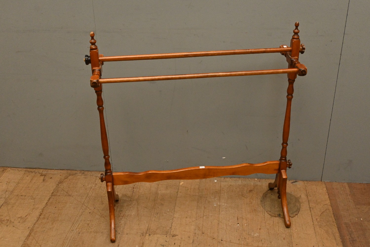 A VINTAGE TEAK DISMANTABLE TOWEL RACK (A/F) (90H X 86W X 31D CM) (LEONARD JOEL DELIVERY SIZE: LARGE)