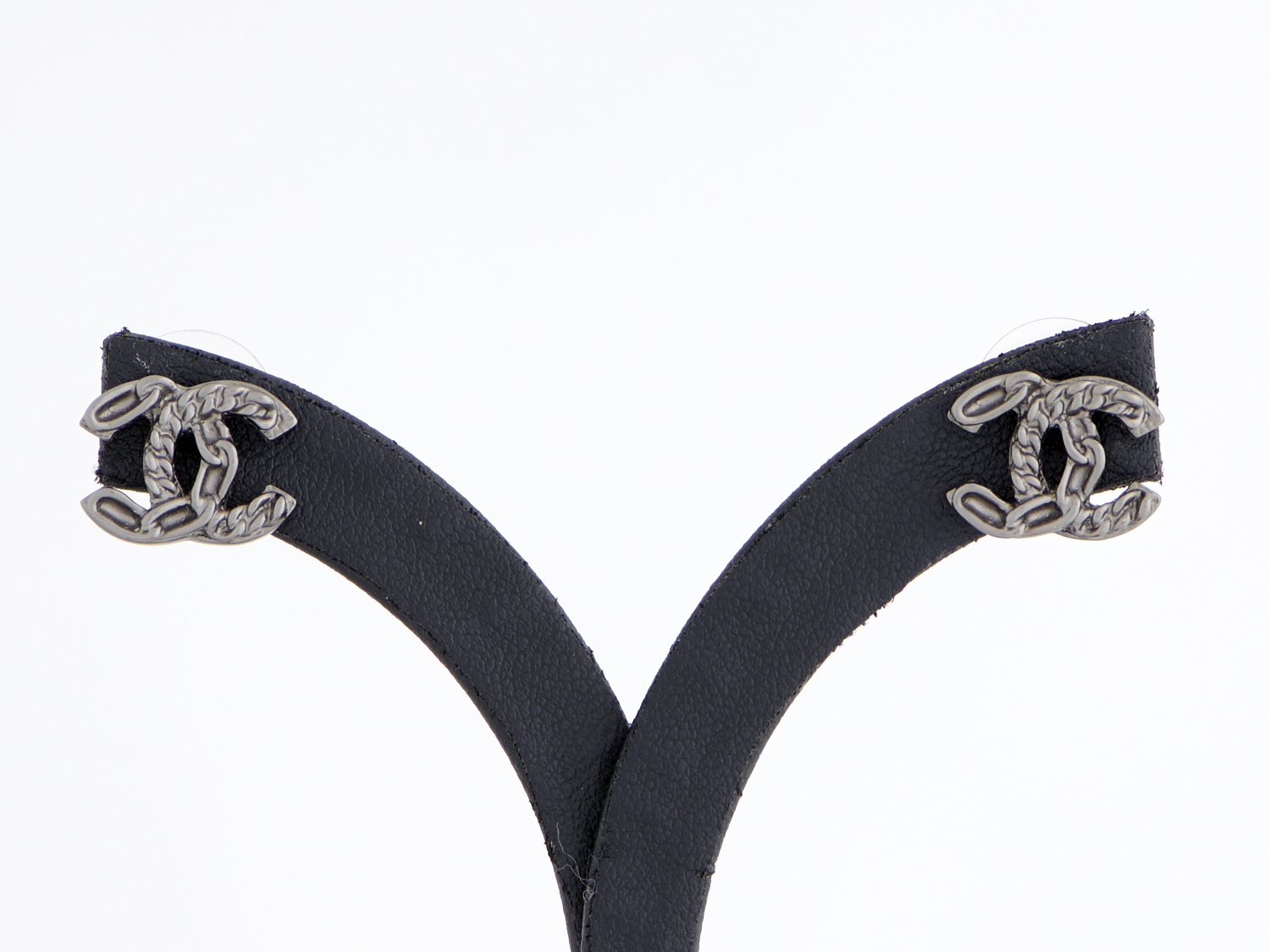CHANEL, PAIR OF CC EARRINGS IN GUNMETAL, TO POST FITTINGS, CIRCA 2010