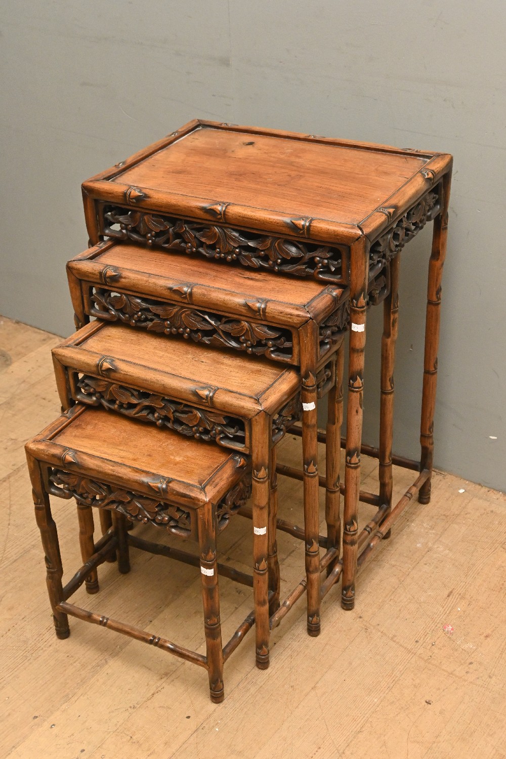 A SET OF FOUR CHINESE HARDWOOD NESTING OCCASIONAL TABLES (72H X 51W X 36D CM) (LEONARD JOEL DELIVERY SIZE: LARGE)