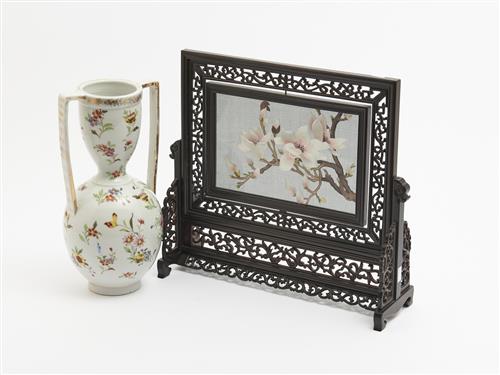 A CHINESE TABLE SCREEN AND VASE H.35CM LEONARD JOEL LOCAL DELIVERY: SMALL