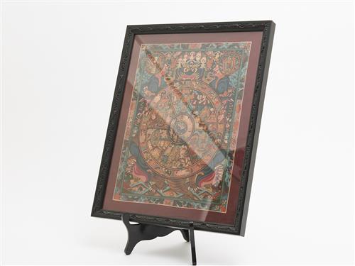 A HAND-PAINTED TIBETAN TANGKA 'WHEEL OF LIFE' IN FRAME H.44CM X W.36CM, LEONARD JOEL LOCAL DELIVERY: SMALL