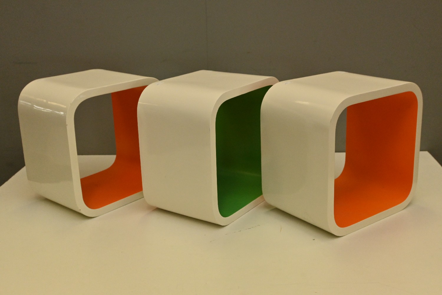 A SET OF THREE RETRO DISPLAY CUBES (30H X 30W X 20D CM) (LEONARD JOEL DELIVERY SIZE: MEDIUM)