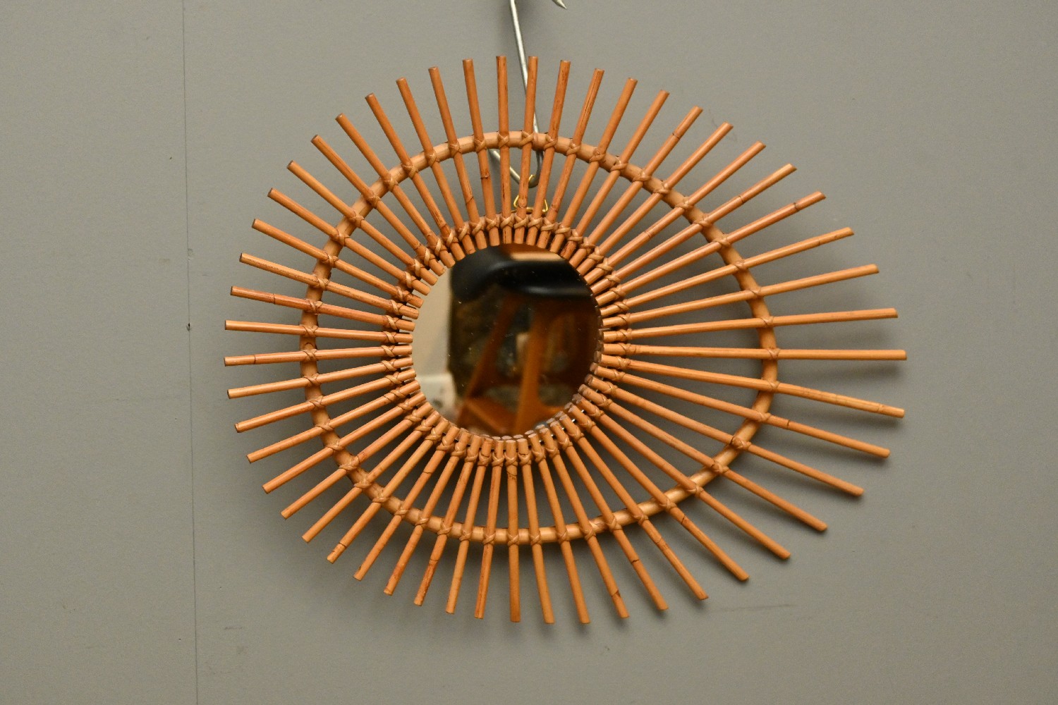 A SUNBURST CANE MIRROR (46H X 58W CM) (LEONARD JOEL DELIVERY SIZE: MEDIUM)
