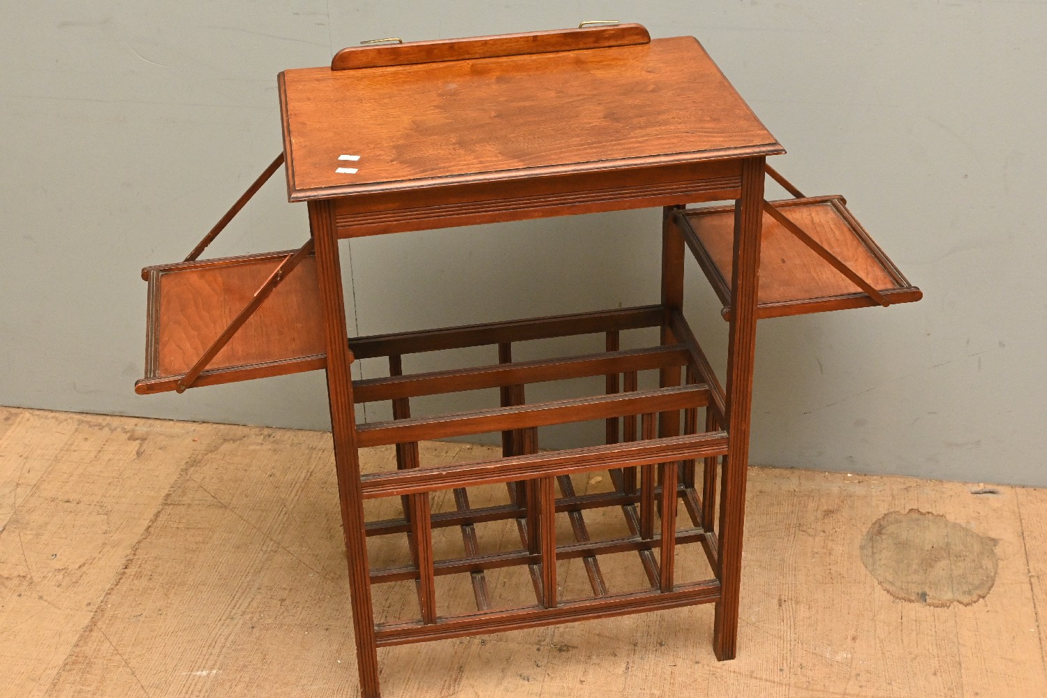 A MAHOGANY LIFT TOP MUSIC STAND WITH LOWER MUSIC STORAGE (A/F) (74H X 94W X 34D CM) (LEONARD JOEL DELIVERY SIZE: LARGE)