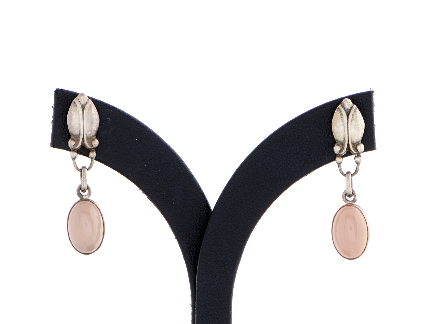 GEORG JENSEN, A PAIR OF ROSE QUARTZ SET DROP EARRINGS IN STERLING SILVER, TO POST AND BUTTERFLY FITTINGS, STYLE REFERENCE N.17, BOXED