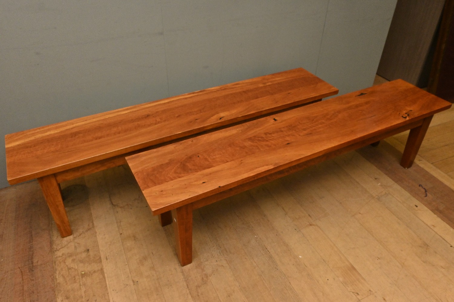 A PAIR OF NICHOLAS DATTNER REDGUM BENCH SEATS (45H X 180W X 37D CM) (PLEASE NOTE THIS HEAVY ITEM MUST BE REMOVED BY CARRIERS AT THE CUSTOMER'S EXPENSE. LEONARD JOEL STAFF CANNOT ASSIST CARRYING THIS ITEM) (X-LARGE ITEM)