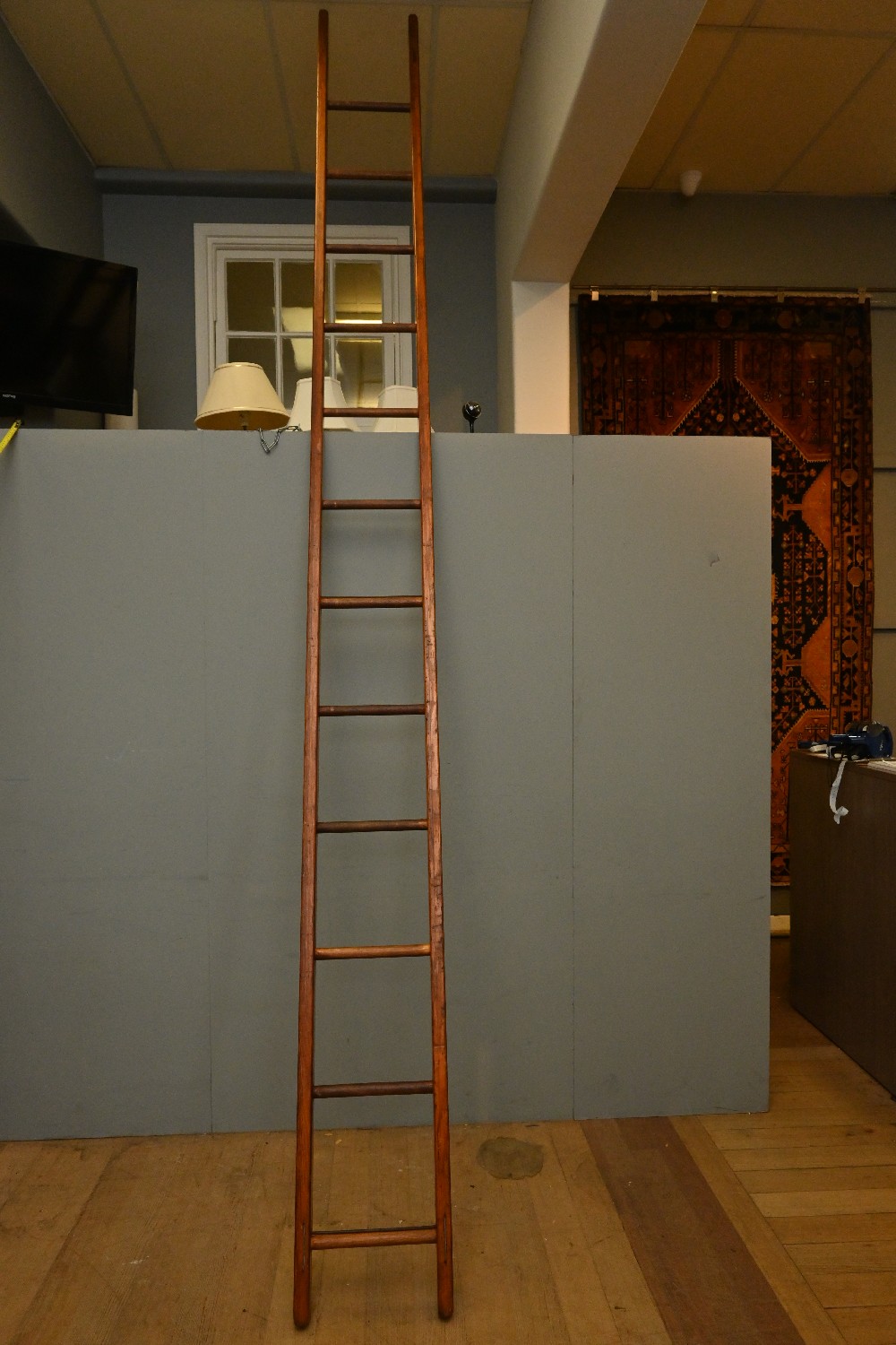 A VINTAGE RED PINE LADDER (393H X 34W CM) (PLEASE NOTE THIS HEAVY ITEM MUST BE REMOVED BY CARRIERS AT THE CUSTOMER'S EXPENSE. LEONARD JOEL STAFF CANNOT ASSIST CARRYING THIS ITEM) (X-LARGE ITEM)