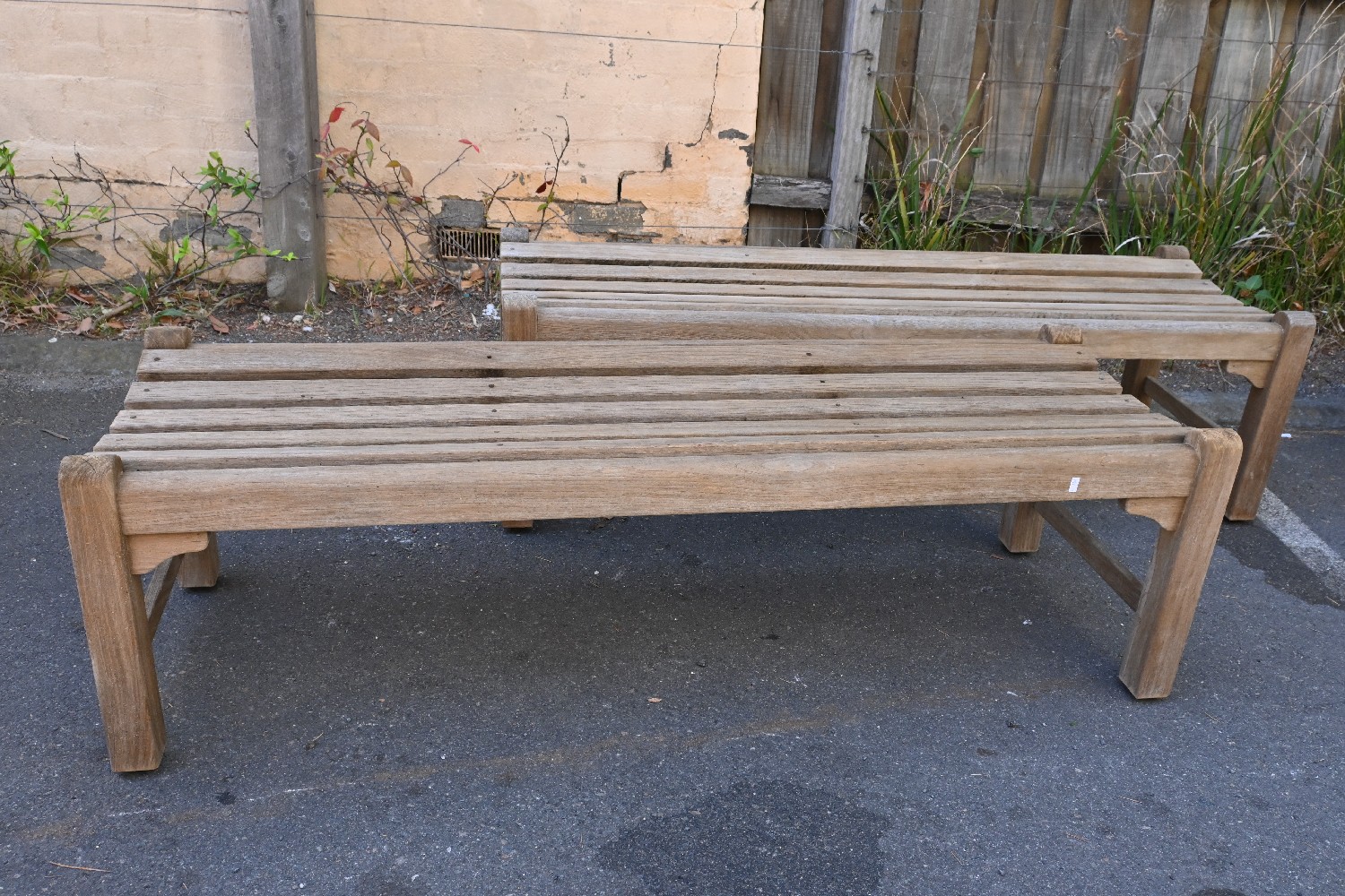 A PAIR OF JATI BENCHES (A/F) (46H X 155W X 52D CM) (PLEASE NOTE THIS HEAVY ITEM MUST BE REMOVED BY CARRIERS AT THE CUSTOMER'S EXPENSE. LEONARD JOEL STAFF CANNOT ASSIST CARRYING THIS ITEM) (X-LARGE ITEM)