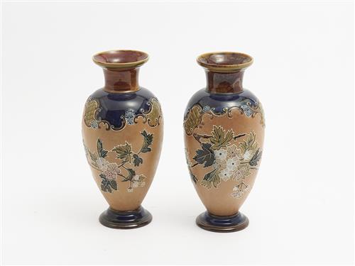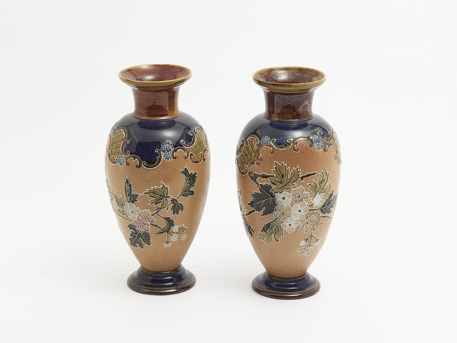 A PAIR OF ROYAL DOULTON STONEWARE VASES H.30.5CM, LEONARD JOEL LOCAL DELIVERY: SMALL