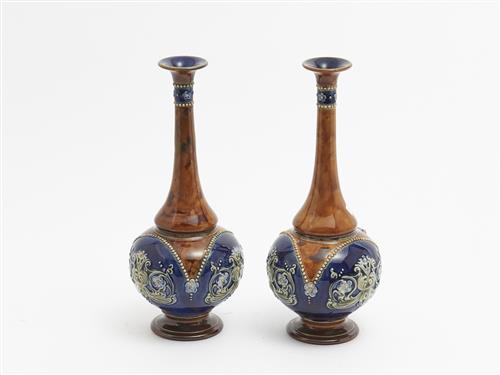 A PAIR OF ROYAL DOULTON STONEWARE VASES H.28.5CM, LEONARD JOEL LOCAL DELIVERY: SMALL