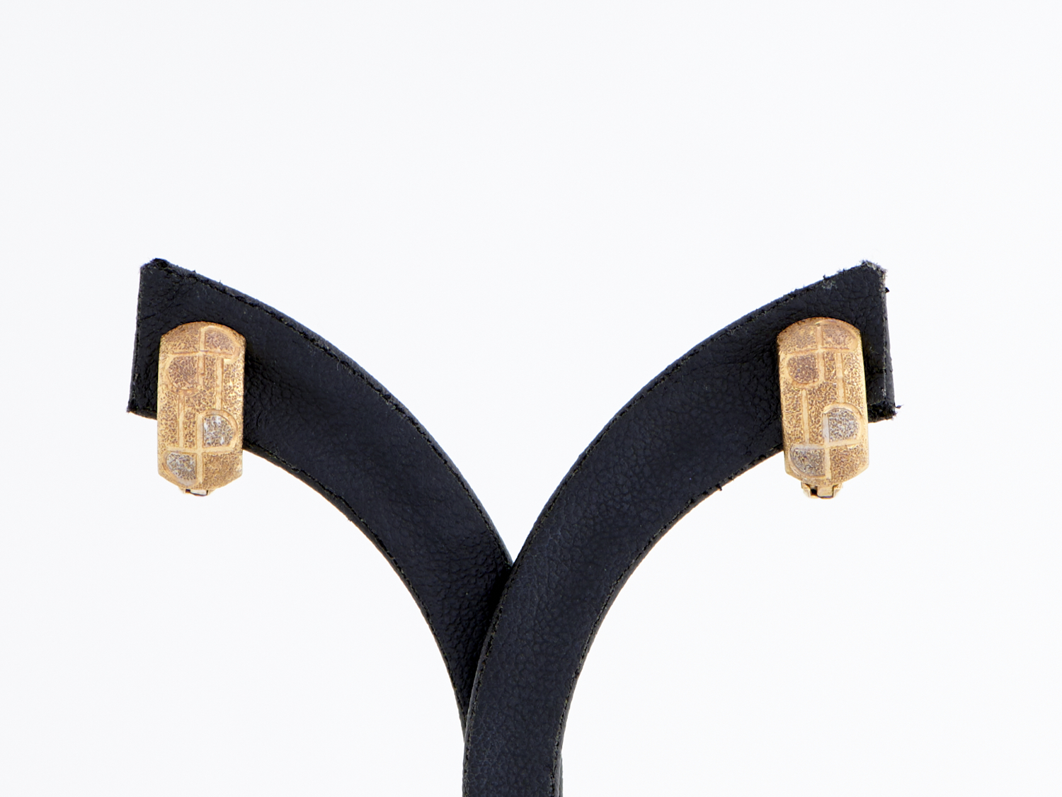 A PAIR OF GEOMETRIC PATTERNED HUGGIE EARRINGS IN 18CT GOLD, 2.8GMS