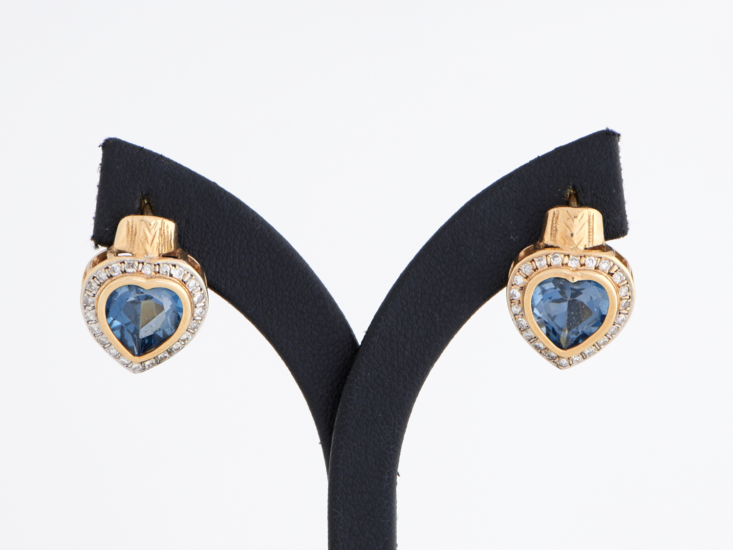 A PAIR OF TOPAZ AND DIAMOND SET EARRINGS IN 14CT GOLD, TO POST AND LEVER BACK FITTINGS