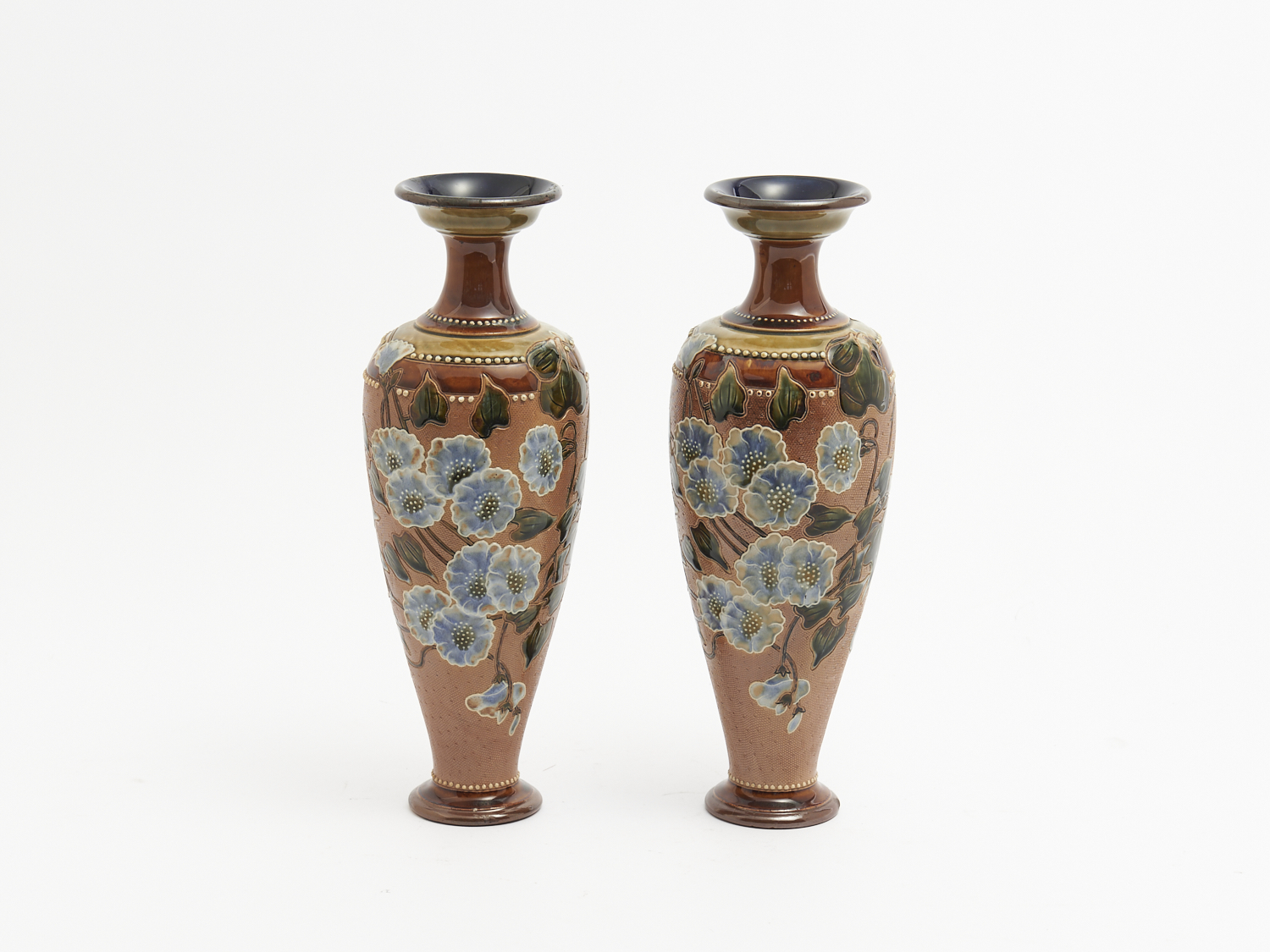 A PAIR OF ROYAL DOULTON STONEWARE VASES H.33CM, LEONARD JOEL LOCAL DELIVERY: MEDIUM