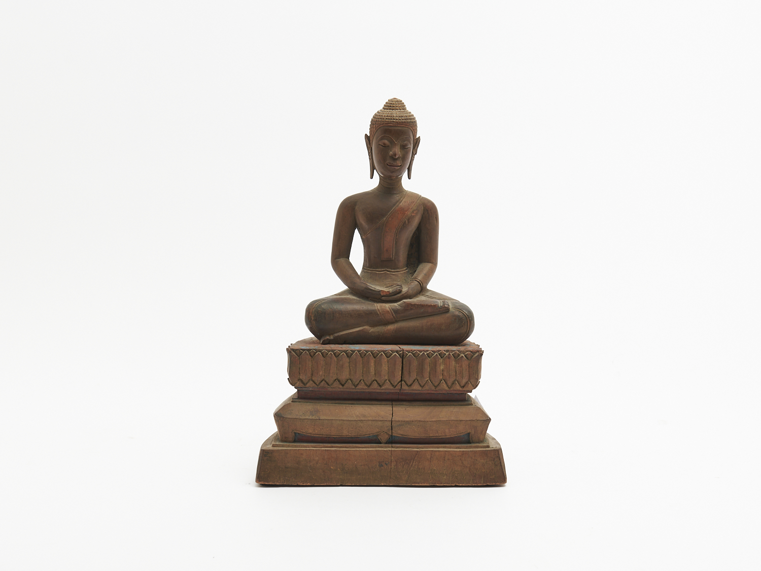 A CARVED HARDWOOD FIGURE OF A SEATED BODHISATTVA, LEONARD JOEL LOCAL DELIVERY: SMALL
