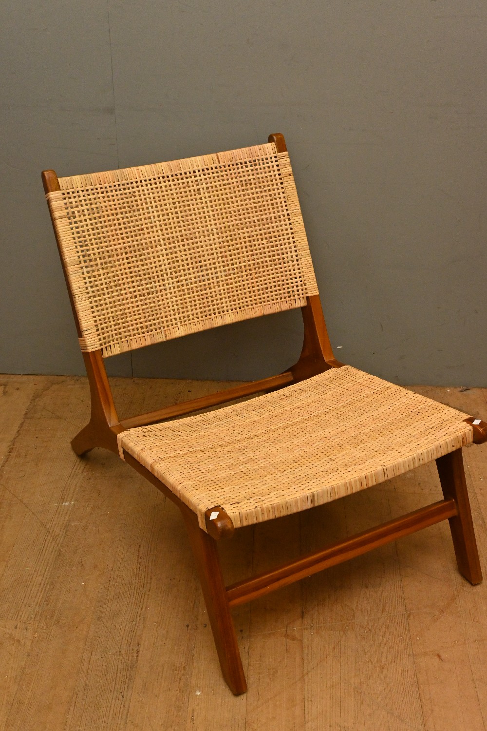 A TEAK & RATTAN ACCENT CHAIR (72H X 61W X 88D CM) (LEONARD JOEL DELIVERY SIZE: LARGE)