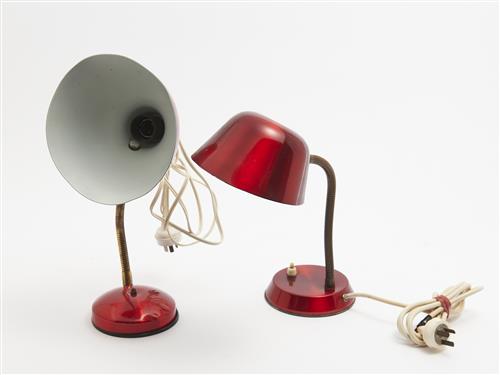 TWO 1950S ANODISED RED GOOSE NECK DESK LAMPS H.39CM (TALLEST) LEONARD JOEL LOCAL DELIVERY: MEDIUM