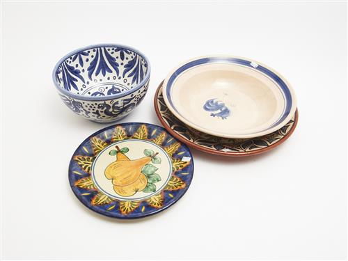 FOUR LARGE SPANISH AND PORTUGUESE GLAZED POTTERY SERVING BOWLS AND PLATTERS DIA.38CM (LARGEST), LEONARD JOEL LOCAL DELIVERY: MEDIUM