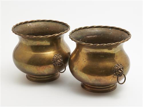 A PAIR OF LARGE FRENCH BRASS LION HEAD SWING HANDLE PLANTERS H.25CM, LEONARD JOEL LOCAL DELIVERY: MEDIUM