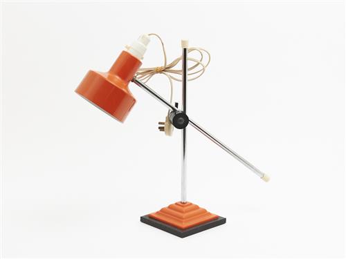 A 1970S ORANGE AND CHROME MOUNTED ADJUSTABLE DESK LAMP H.42CM, LEONARD JOEL LOCAL DELIVERY: MEDIUM