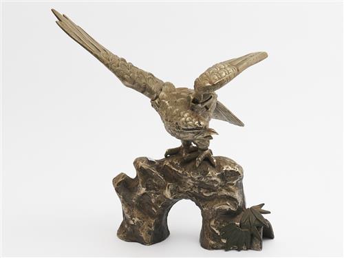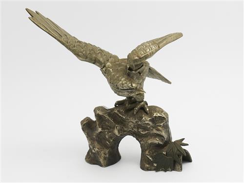 A VINTAGE CAST IRON EAGLE FIGURE ON NATURALISTIC ROCKY OUTCROP BASE H.39CM, LEONARD JOEL LOCAL DELIVERY: MEDIUM