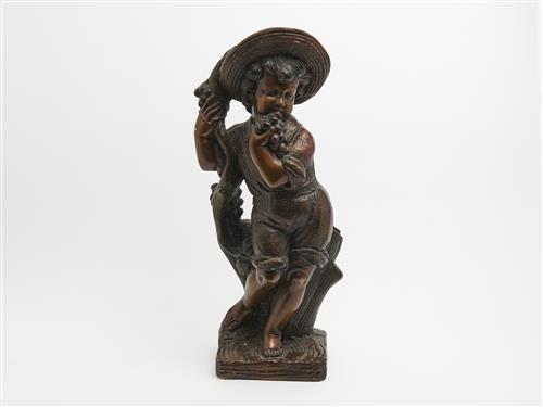 A VINTAGE BRONZED PLASTER FIGURE OF A BOY WITH GRAPES (A/F) H.70CM, LEONARD JOEL LOCAL DELIVERY: MEDIUM