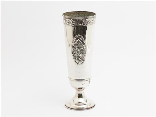 A LARGE AUSTRALIAN SILVER PLATE GUM LEAF DECORATED VASE H.38CM, LEONARD JOEL LOCAL DELIVERY: SMALL