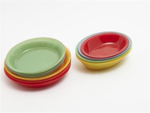 NINE HARLEQUIN COLOURED AUSTRALIAN PYREX BAKING/SERVING BOWLS L.25CM (LONGEST) LEONARD JOEL LOCAL DELIVERY: SMALL