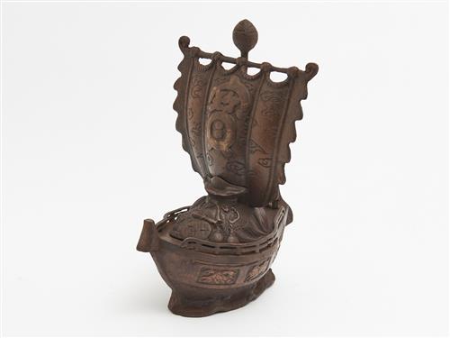 A BRONZED CHINESE CAST-IRON JUNK BOAT WITH LIFT OFF COMPARTMENT H.32CM, LEONARD JOEL LOCAL DELIVERY: SMALL