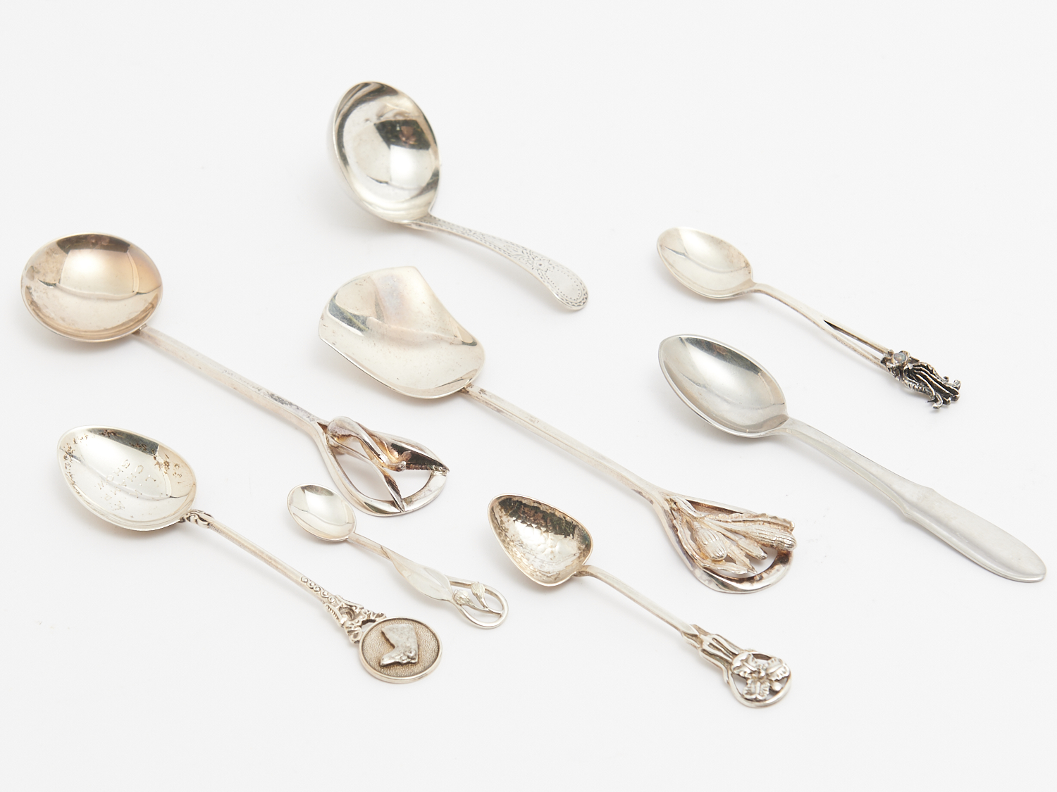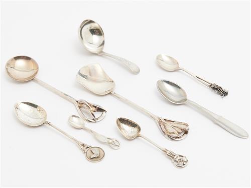 A GROUP OF SMALL DECORATIVE STERLING SILVER SPOONS, 118GMS, LEONARD JOEL LOCAL DELIVERY: SMALL