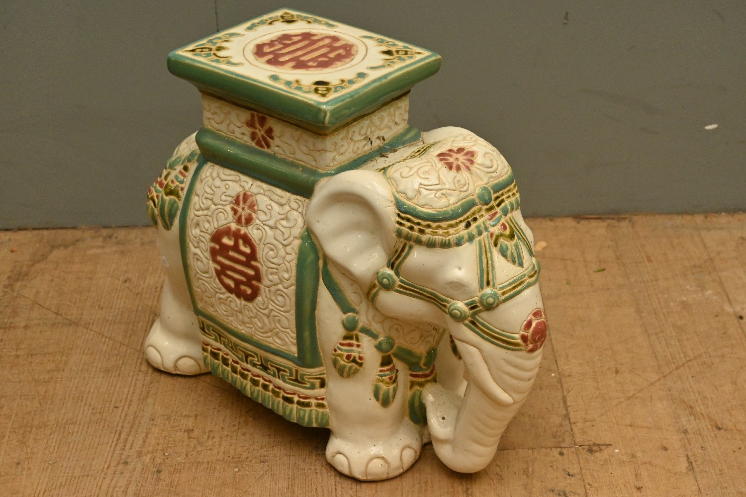 A CERAMIC ELEPHANT FORM PLANT STAND (38H X 18W X 47D CM) (LEONARD JOEL DELIVERY SIZE: LARGE)
