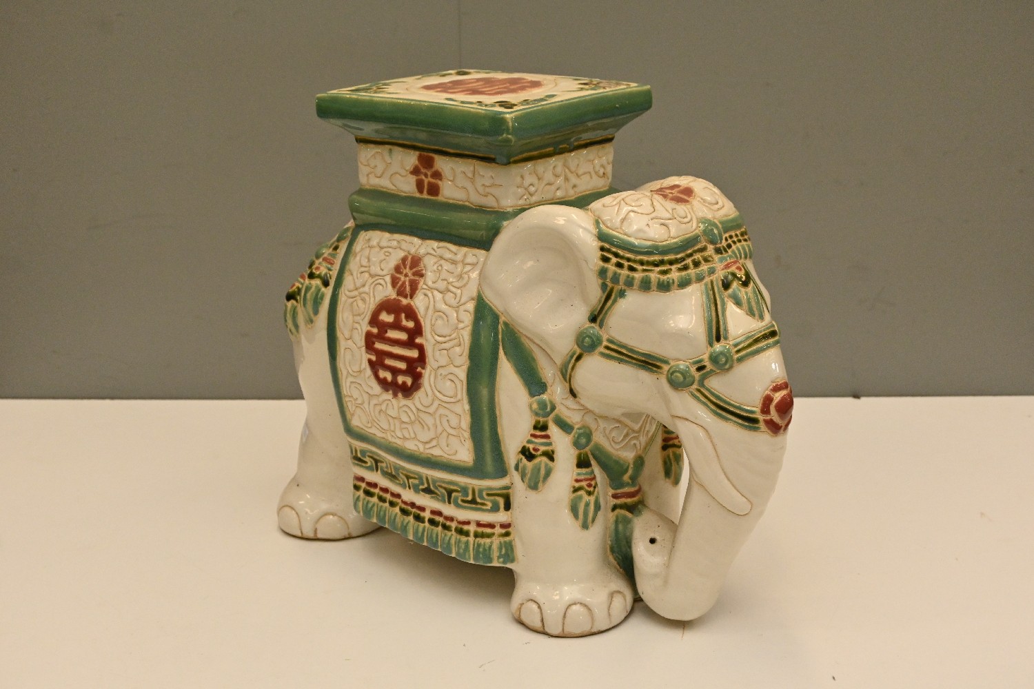 A CERAMIC ELEPHANT FORM PLANT STAND (39H X 21W X 50D CM) (LEONARD JOEL DELIVERY SIZE: LARGE)