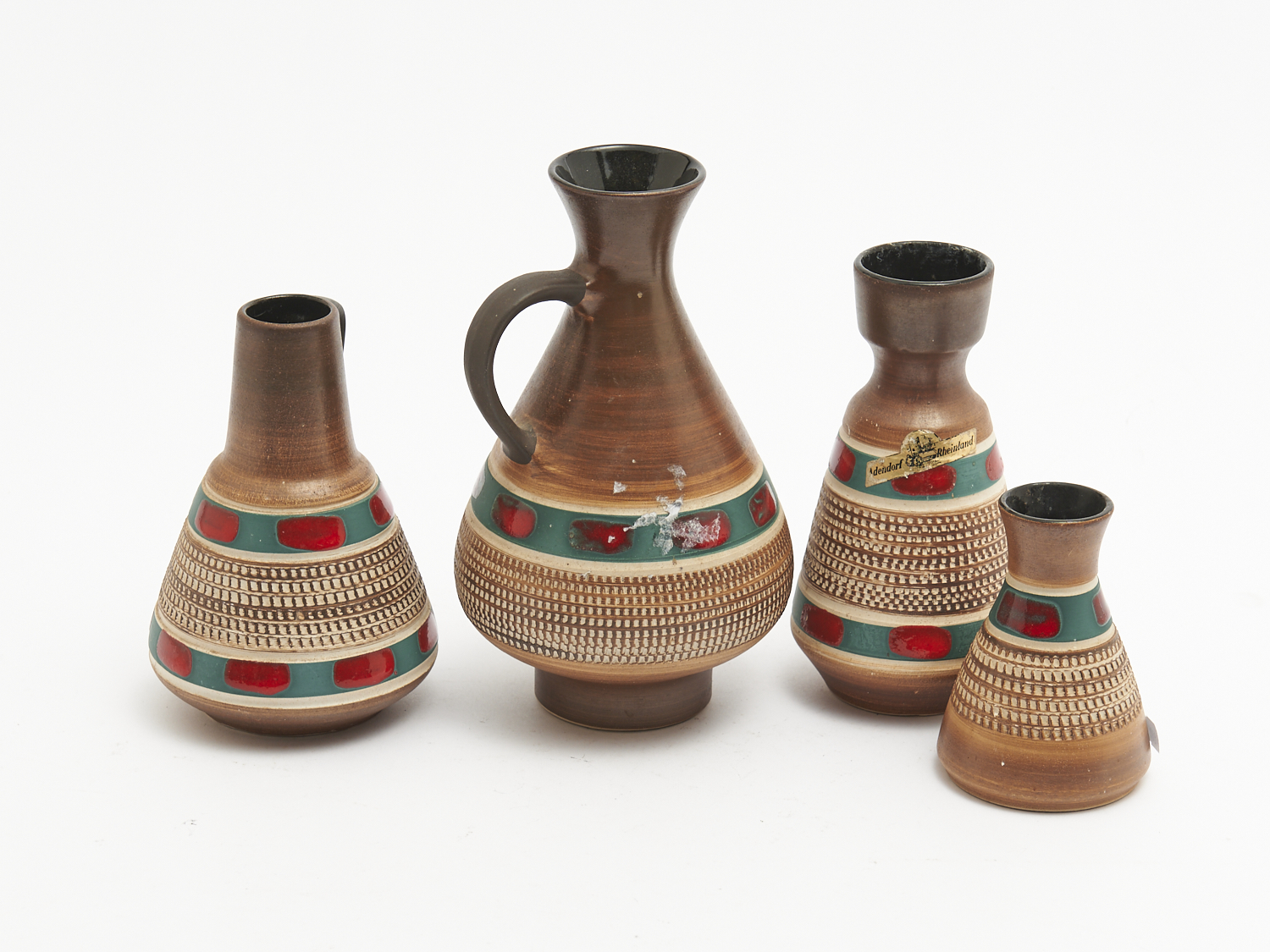 FOUR 1960S GERMAN CERAMIC VASES H.21CM (TALLEST), LEONARD JOEL LOCAL DELIVERY: SMALL