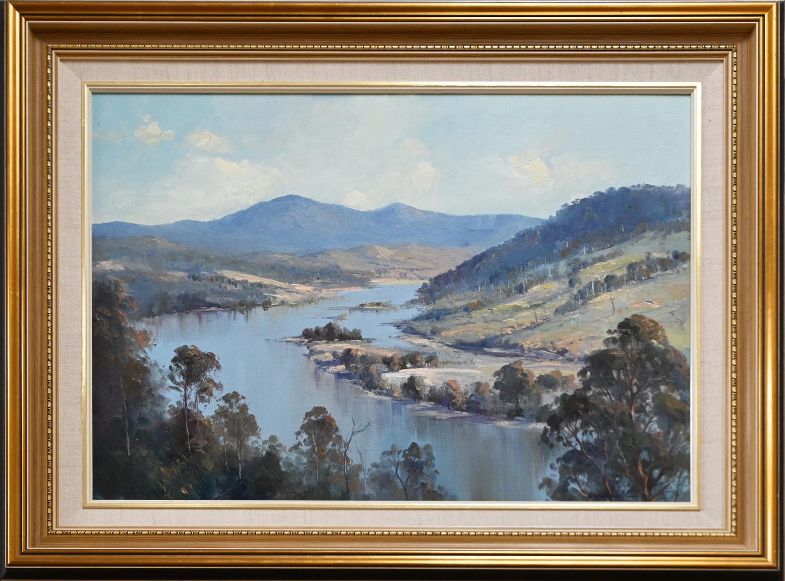 WYKEHAM PERRY, ABOVE THE MANNING RIVER, OIL ON BOARD, SIGNED LOWER RIGHT, 54 X 74CM, FRAME SIZE: 78 X 98CM