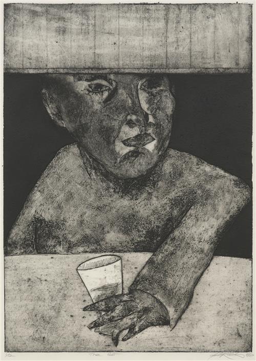 Created in 1986 whilst John Kelly was studying at RMIT. Experimenting with the print medium, Kelly produced this small edition run of 12 using a cardboard plate.