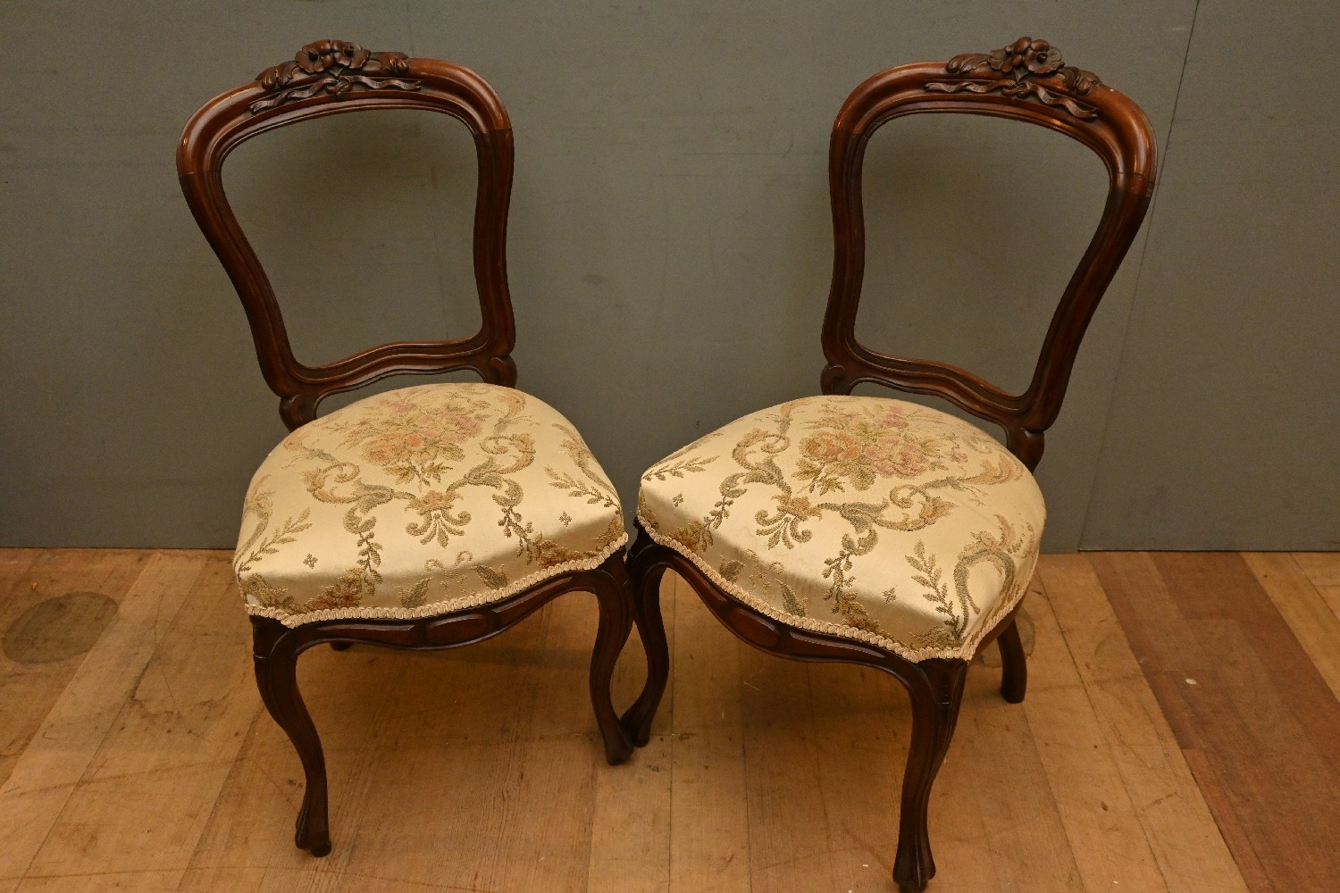 A PAIR OF VICTORIAN MAHOGANY AND UPHOLSTERED SIDE CHAIRS (A/F) (92H X 48W X 55D CM) (LEONARD JOEL DELIVERY SIZE: LARGE)