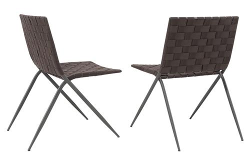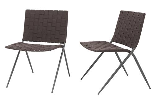Solid smoke steel frames with dark brown woven belt seating and backing.