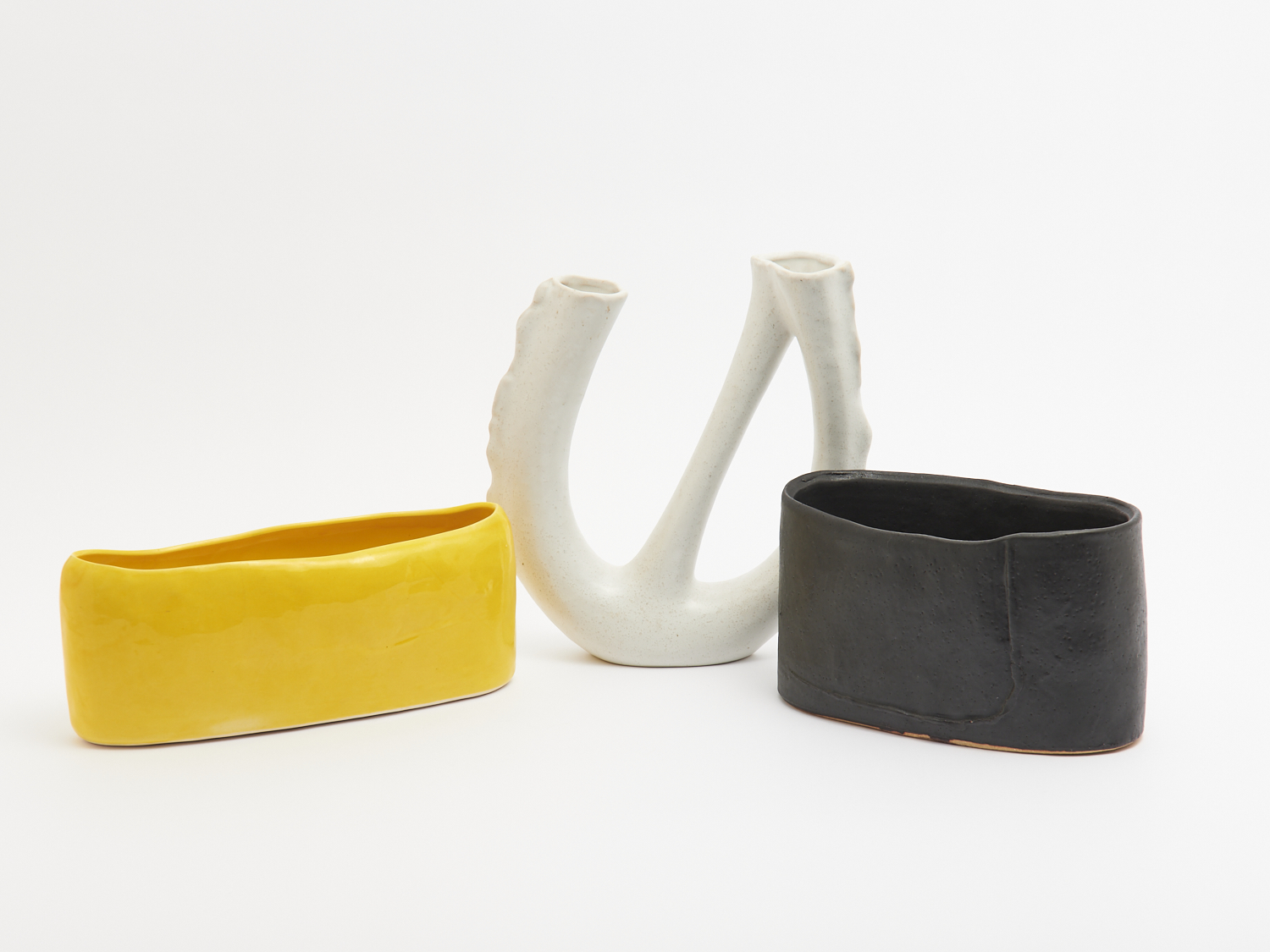 THREE IKEBANA VASES INCLUDING TWO TROUGHS AND A FREESTYLE PIECE H.27CM (TALLEST), LEONARD JOEL LOCAL DELIVERY: MEDIUM