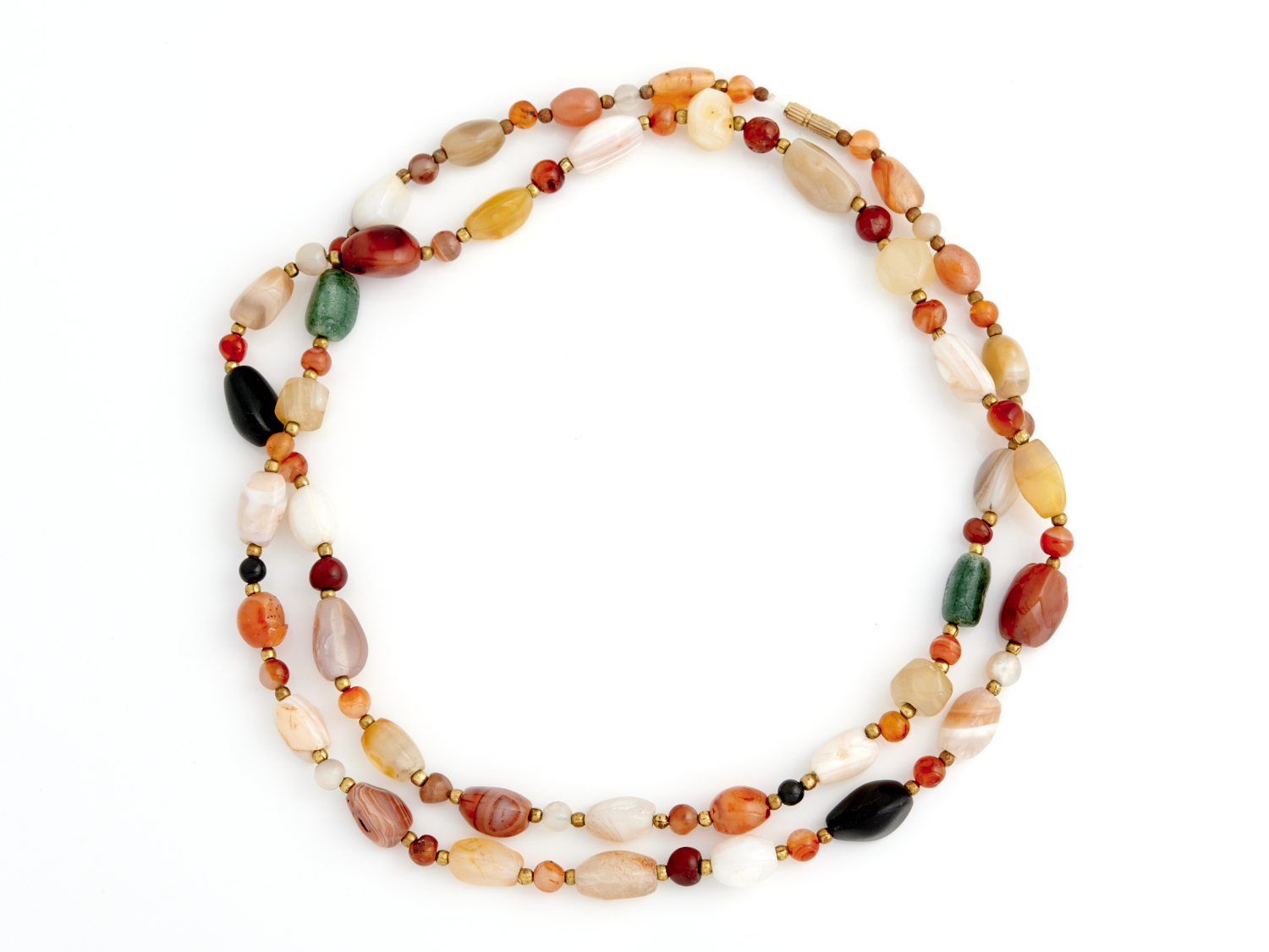 A/F clasp detatched from one strand of agate beads.