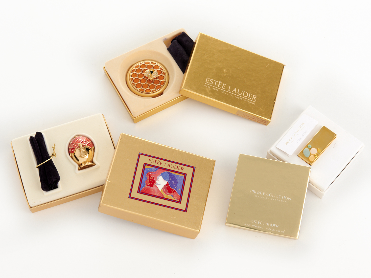ESTEE LAUDER, PRIVATE COLLECTION POWDER COMPACT WITH TWO OTHER ITEMS , ALL BOXED