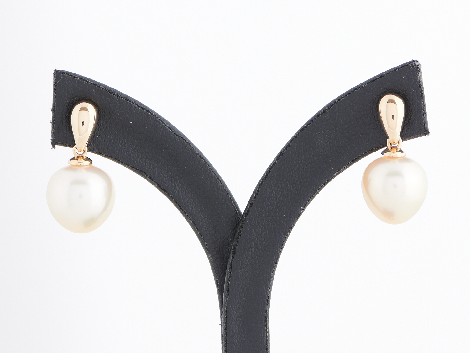 A PAIR OF SOUTH SEA PEARL EARRINGS IN 9CT GOLD, THE PEARLS MEASURING 11MM, TO POST AND BUTTERFLY FITTINGS, LENGTH 20MM
