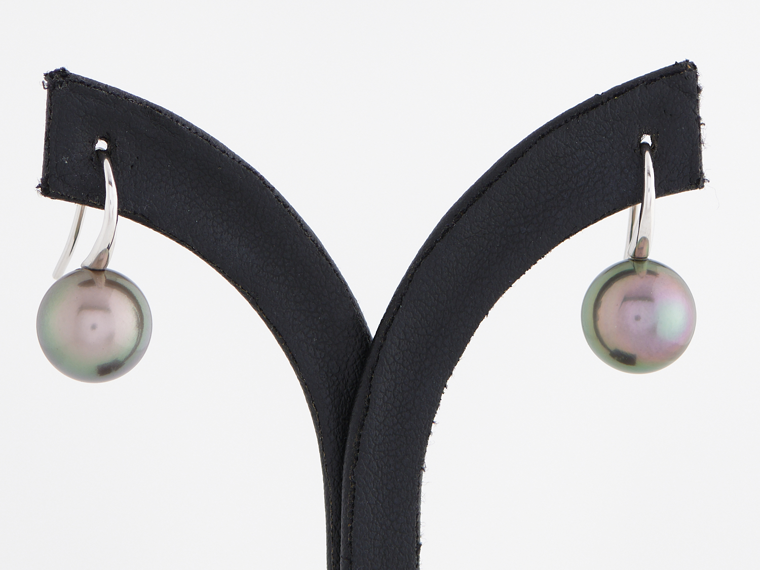 A PAIR OF TAHITIAN PEARL EARRINGS TO SHEPHERD HOOKS IN 9CT WHITE GOLD, THE PEARLS MEASURING 10.8MM