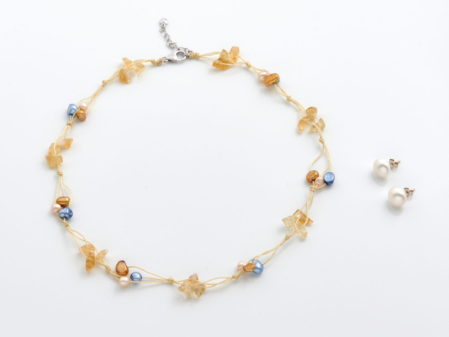 A FRESH WATER PEARL AND ROCK CRYSTAL NECKLACE, TOGETHER WITH A PAIR OF PEARL STUDS IN STERLING SILVER