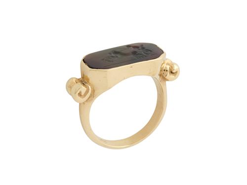 18CT GOLD AND HARDSTONE INTAGLIO RING