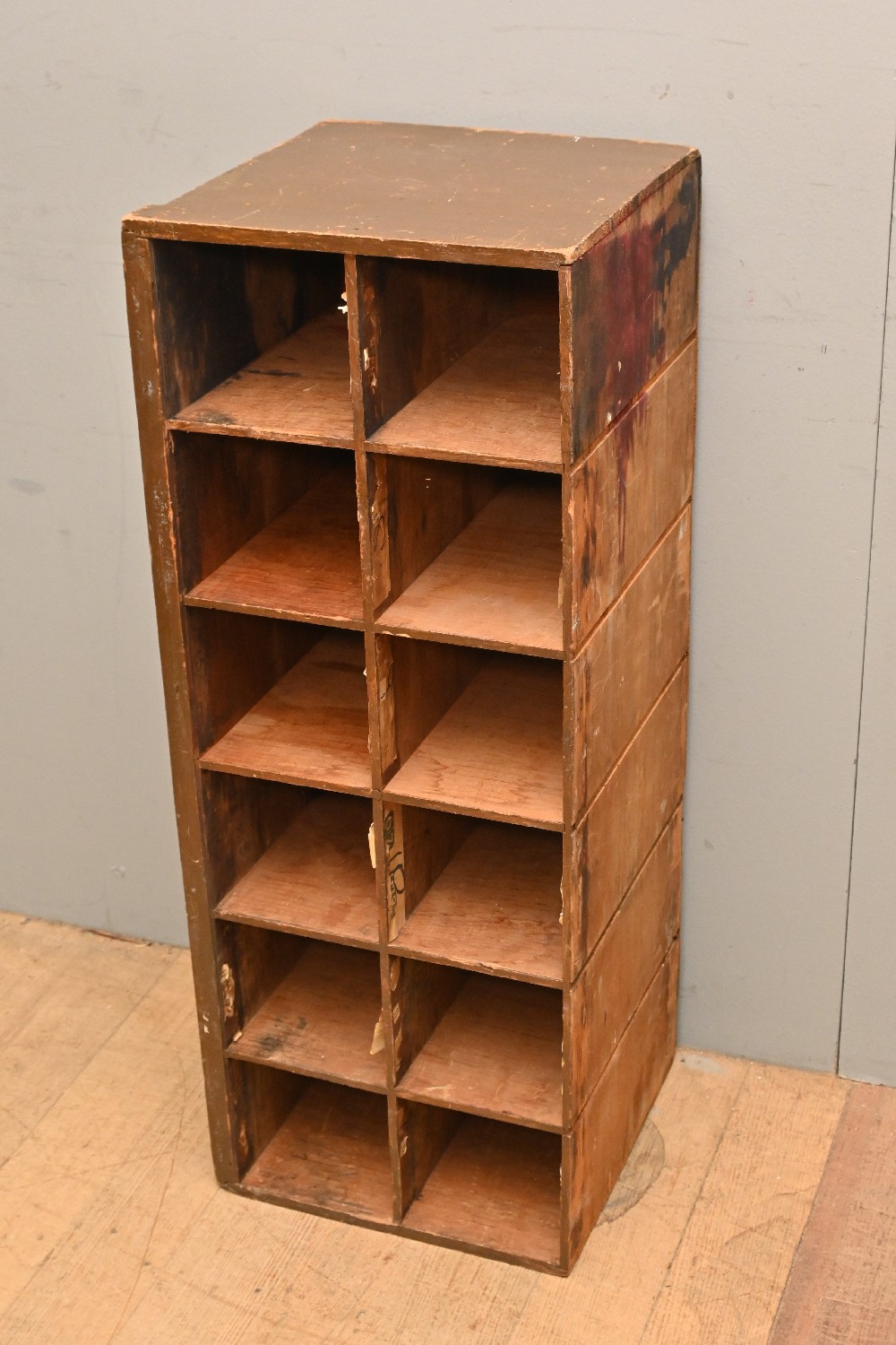 A TIMBER TWELVE HOLE PIDGEON HOLE UNIT (A/F) (98H X 35W X 34D CM) (LEONARD JOEL DELIVERY SIZE: LARGE)