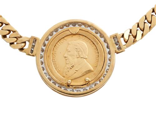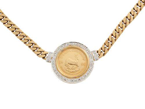 18CT TWO-TONE GOLD, KRUGERRAND AND DIAMOND NECKLACE