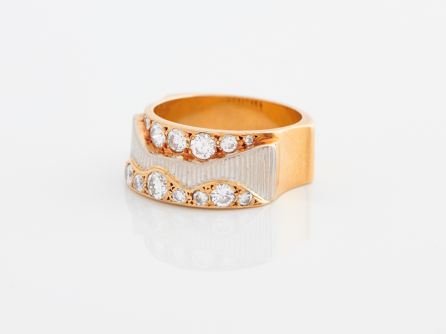 A DIAMOND DRESS RING IN TWO-TONE 18CT GOLD, THE DIAMONDS TOTALLING APPROXIMATELY 1.00CT, SIZE S-T, 16.7GMS