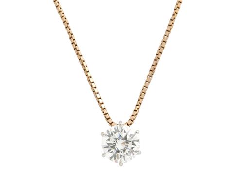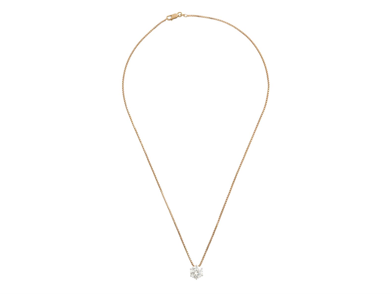 Claw-set with a brilliant-cut diamond weighing approximately 4.03 carats, suspended from a box link chain in 9ct gold, completed by a parrot clasp, chain length approximately 550mm.